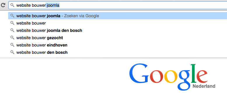We hebben nu in ons voorbeeld: “Website bouwer Joomla” Deze combinatie is al specifieker en gericht op de doelgroep die op zoek gaan naar een website bouwer voor het Joomla CMS.