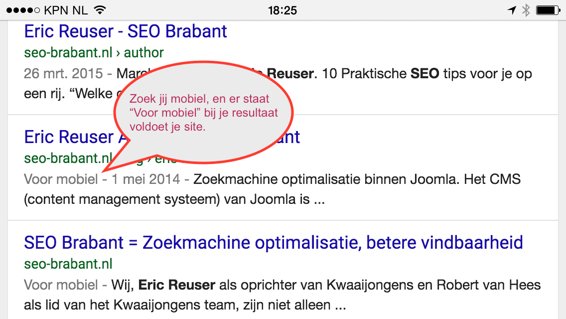 Om zeker te weten of je website voldoet aan de mobiel vriendelijke test van Google doe je een check op Google zelf. Je krijgt direct het resultaat.
