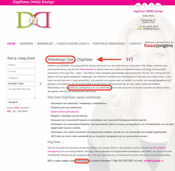 - Gebruik je focus zoekwoord, mogelijk twee als dit sterker is naar je bezoeker
